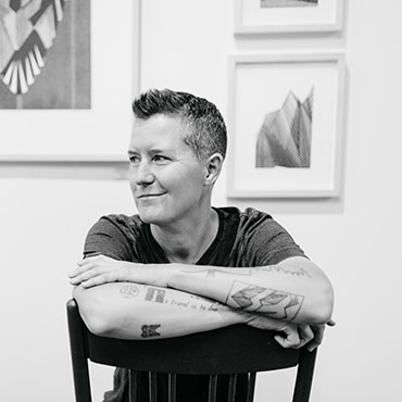 The piece starts pre-colonialism on the left of the mural. It depicts the lush green areas of Luck-Lucky, now ‘Gastown’, and references the Musqueam canoe portage route between Burrard Inlet and False Creek, as well as some traditional long houses. Moving right, the significance of the early forestry industry is expressed through the transition from dense trees to stumps.